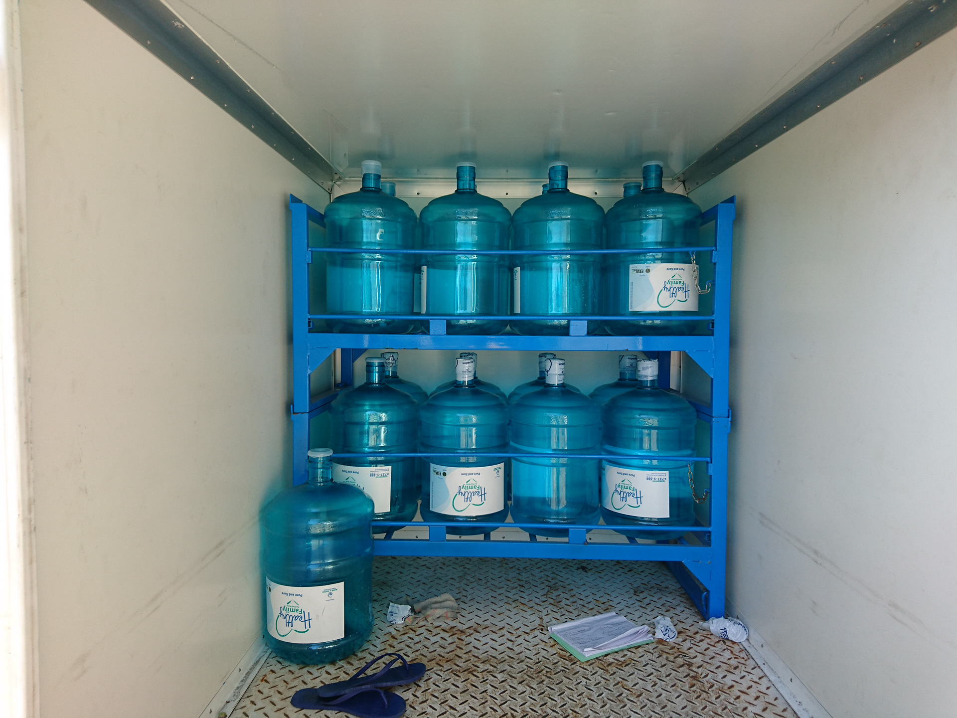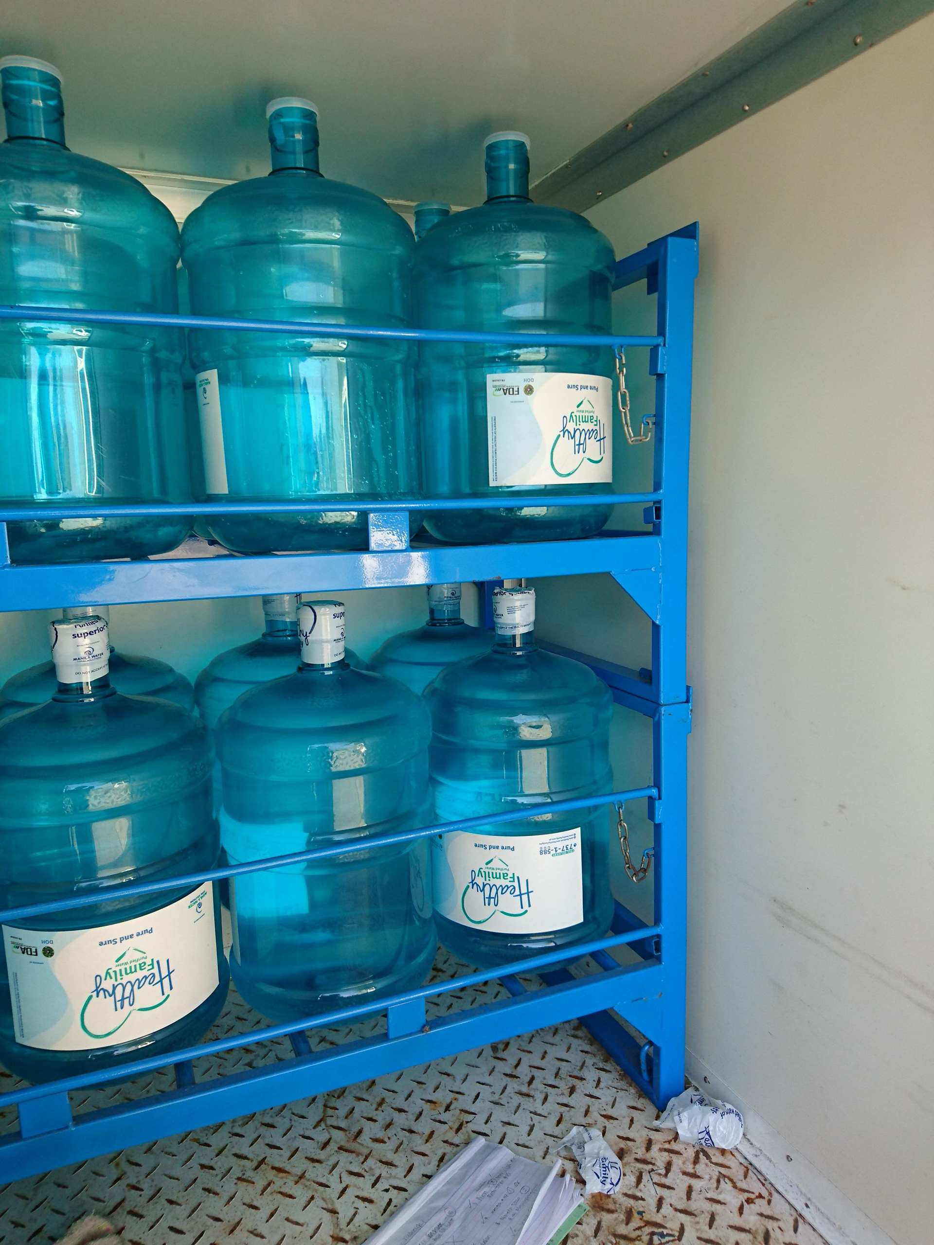 This project was a filling - warehousing - distribution solution for handling 5-gallon water containers for Manila Water's Healthy Family Drinking Water program. Features lockable stacks, removable casters, filling-machine compatibility and secure forklift handling.
